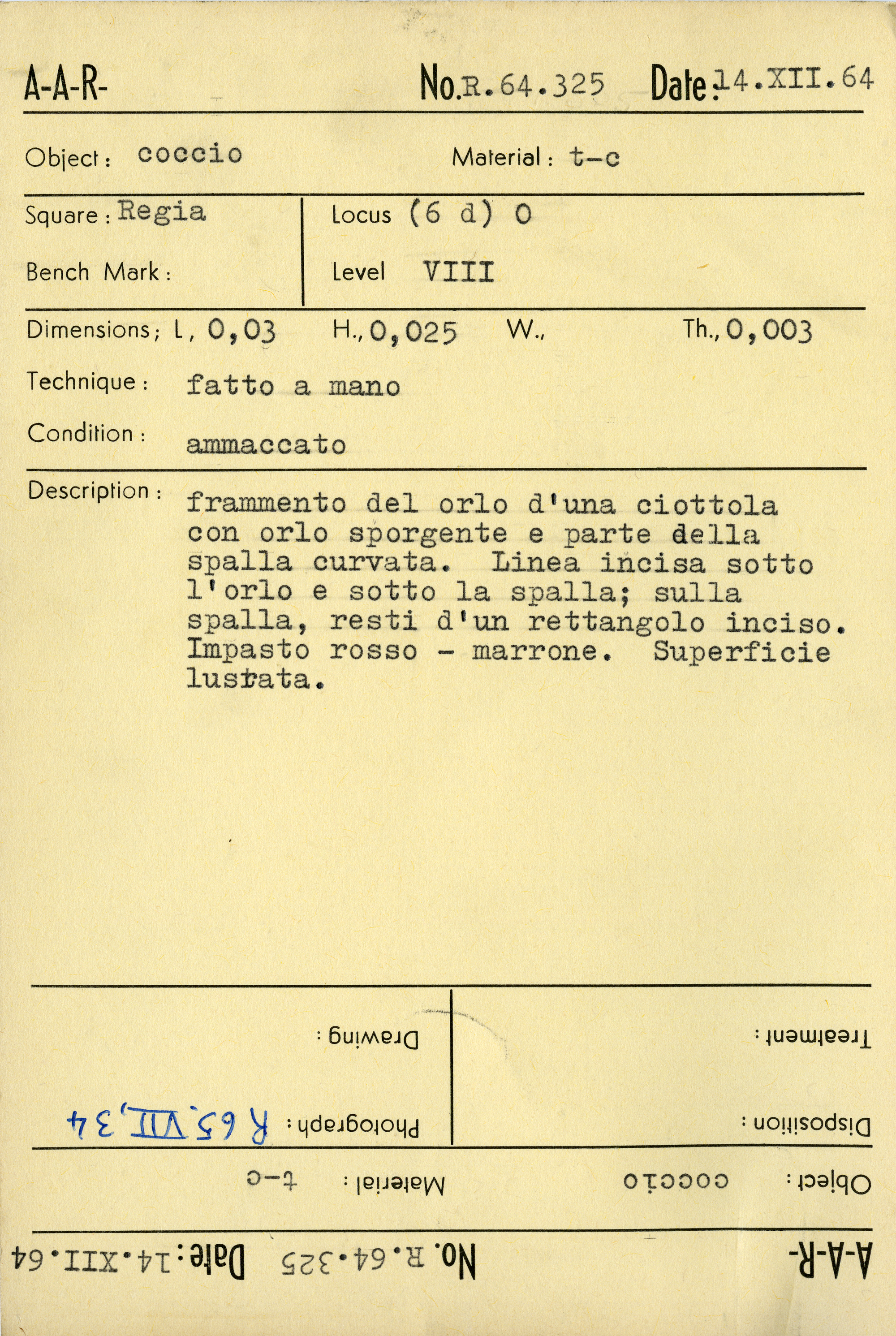 Regia Catalogue: [R64.325_Card] (R64.325_Card), 1964-12-14