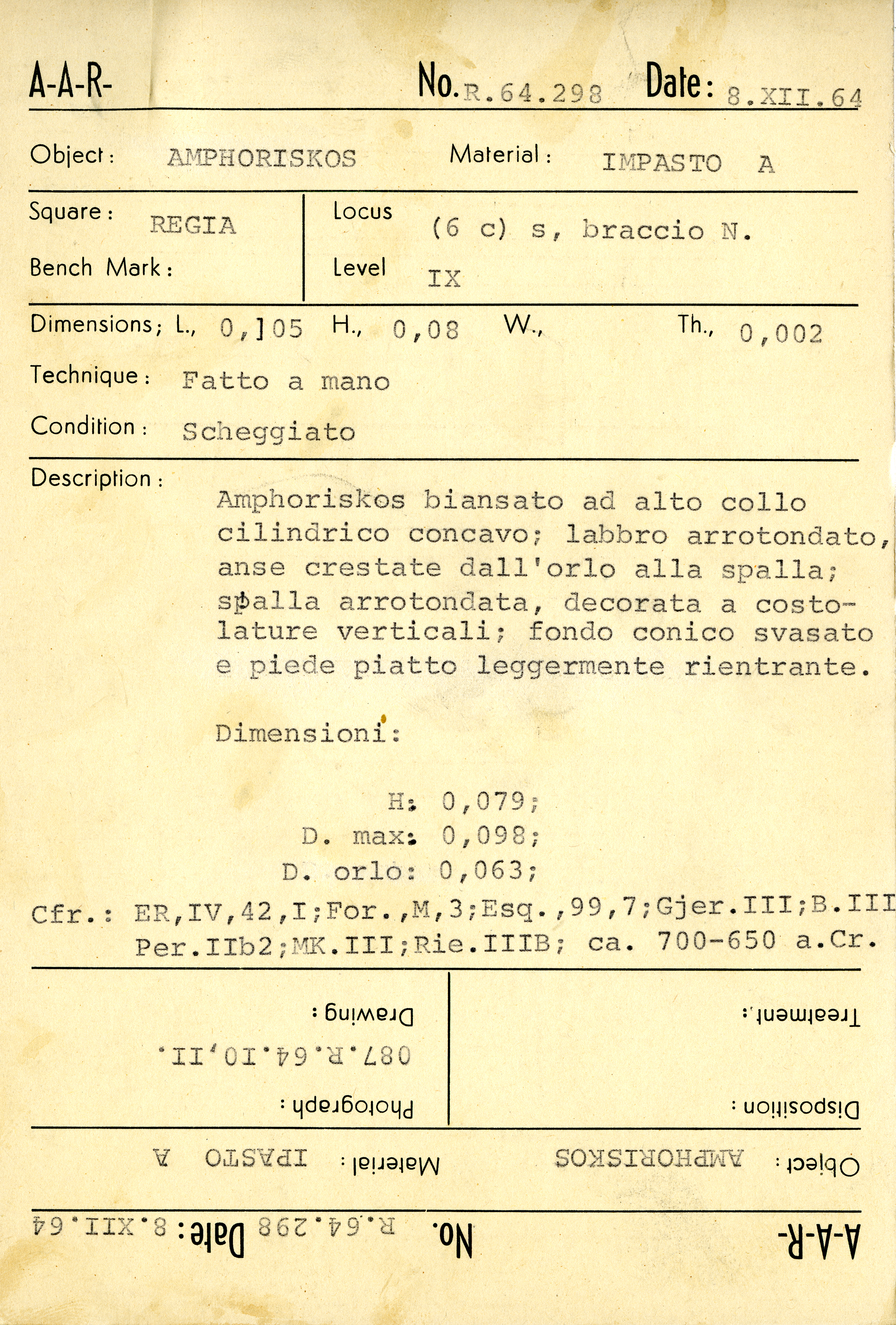 Regia Catalogue: [R64.298.Card] (R64.298.Card), 1964-12-08