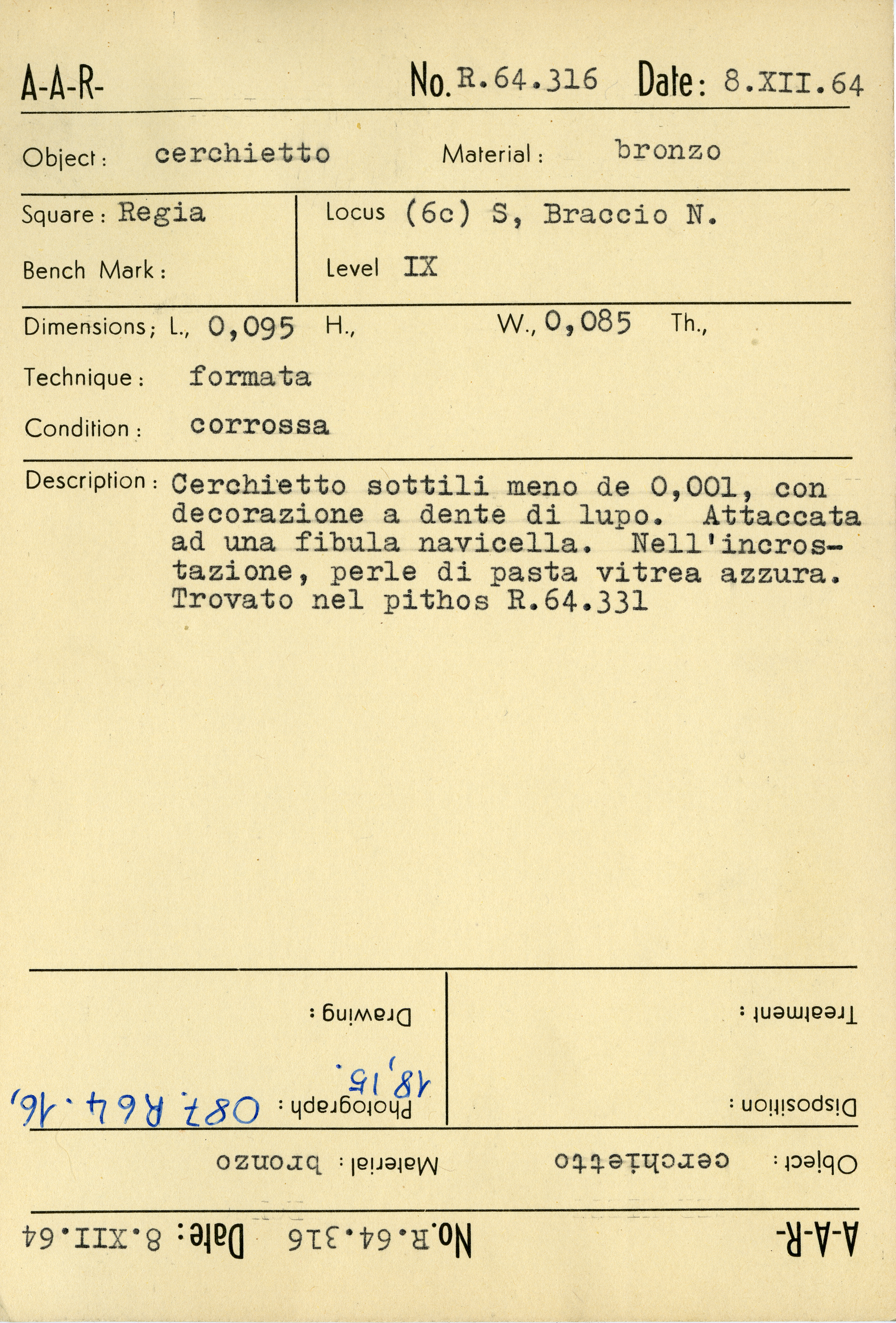 Regia Catalogue: [R64.316_Card] (R64.316_Card), 1964-12-08