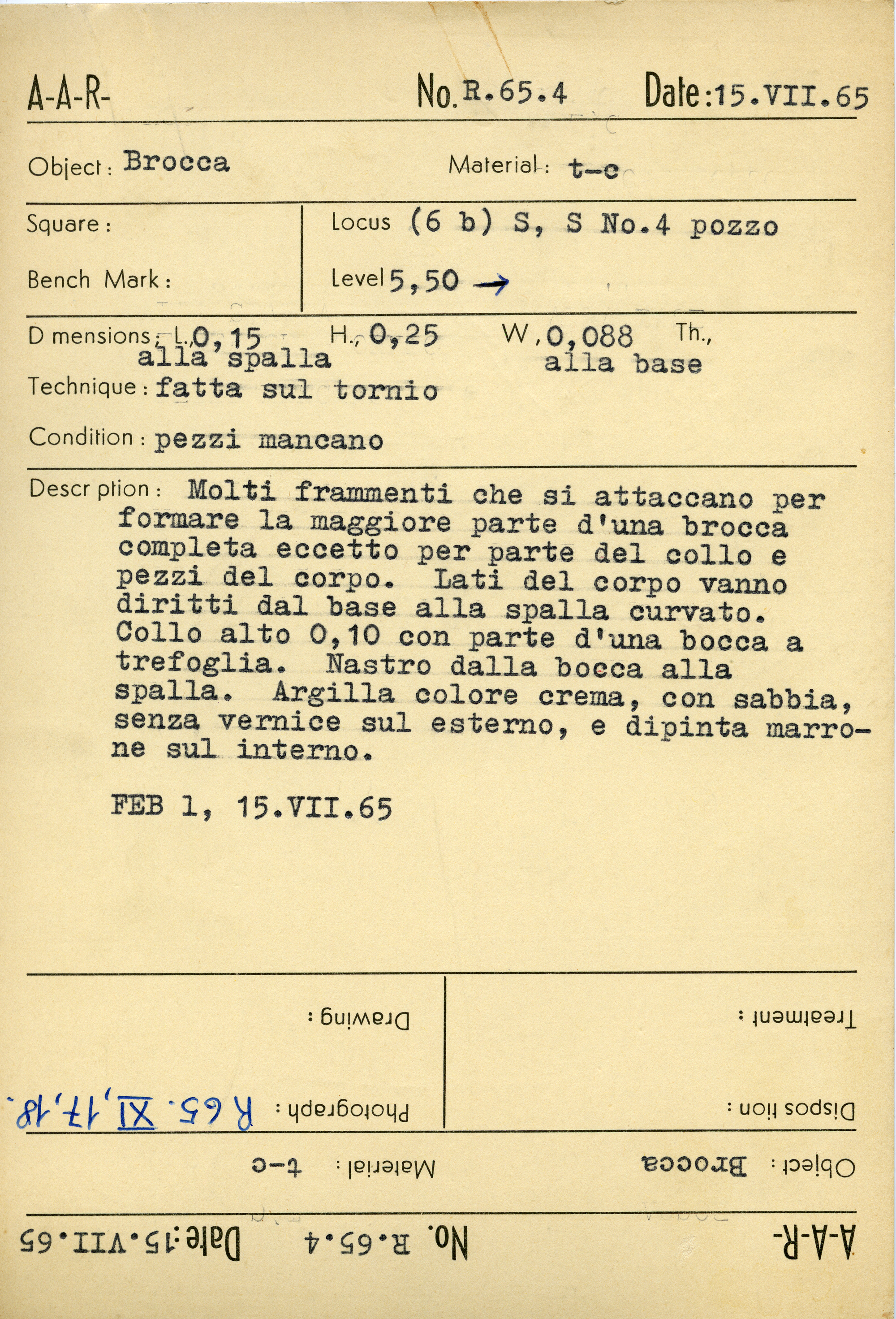 Regia Catalogue: [R65.4_Card] (R65.4_Card), 1965-07-15