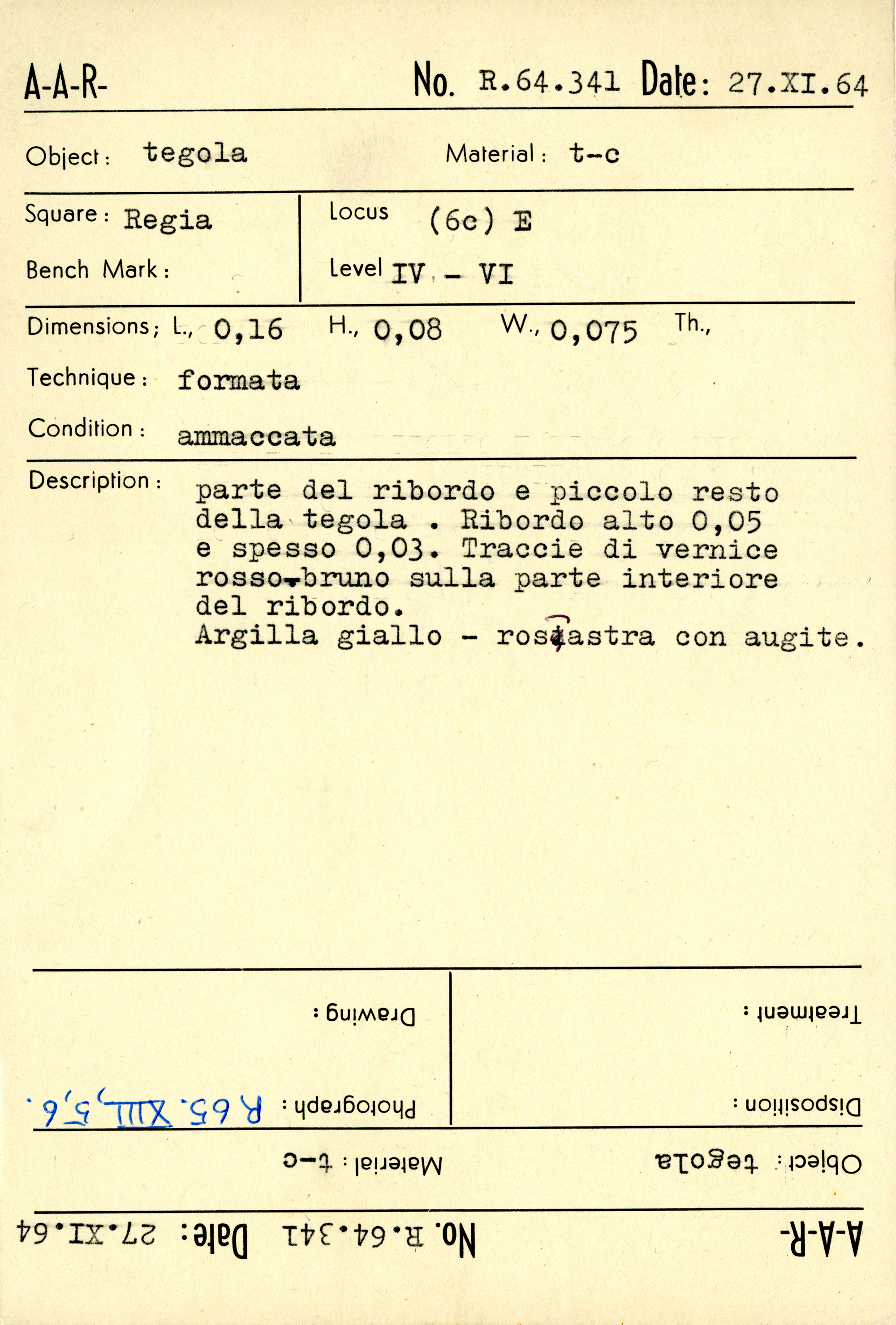 Regia Catalogue: [R64.341_Card] (R64.341_Card), 1964-11-27