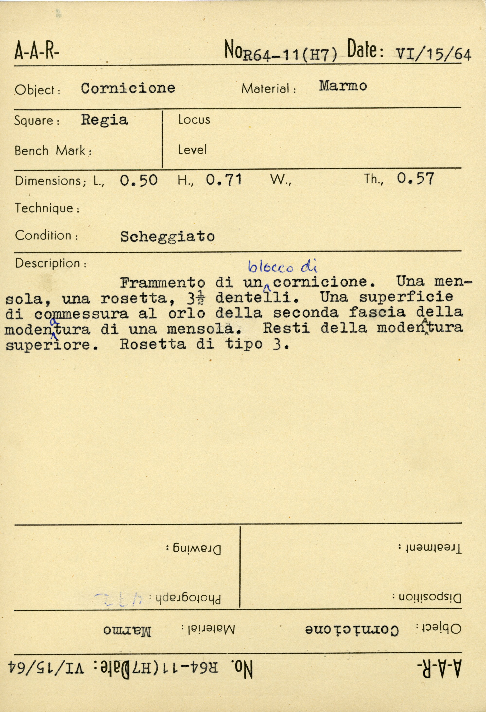 Regia Catalogue: [R64.11_Card] (R64.11_Card), 1964-06-15