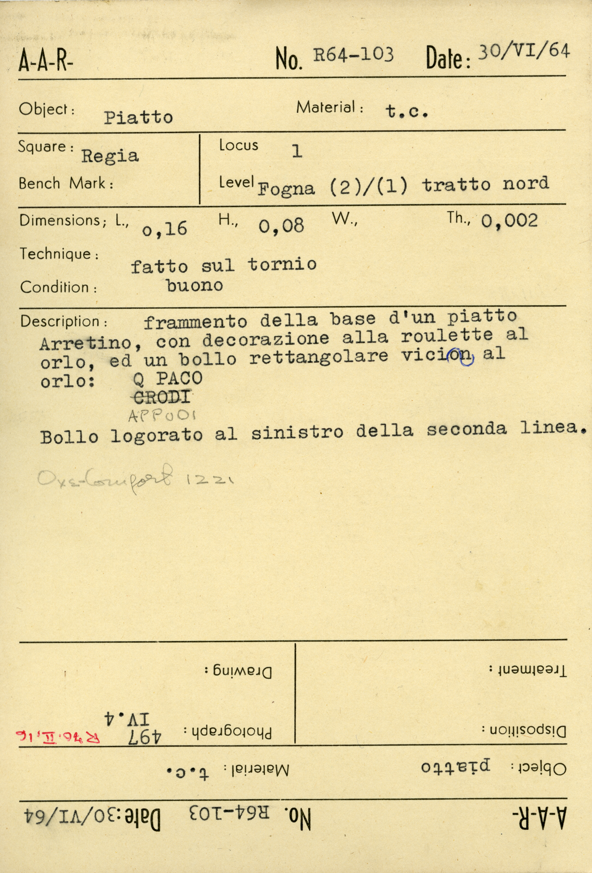 Regia Catalogue: [R64.103_Card] (R64.103_Card), 1964-06-30