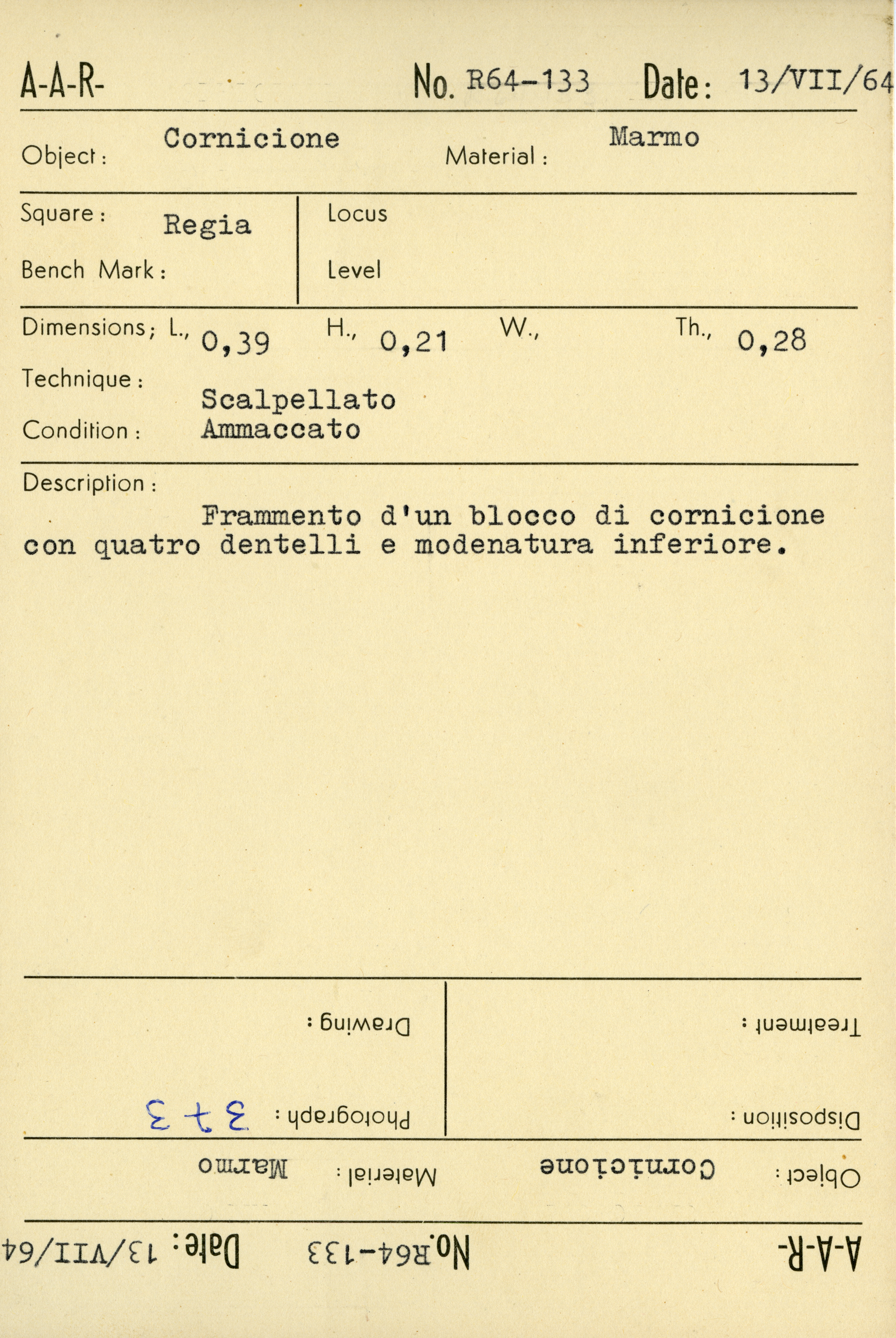 Regia Catalogue: [R64.133_Card] (R64.133_Card), 1964-07-13
