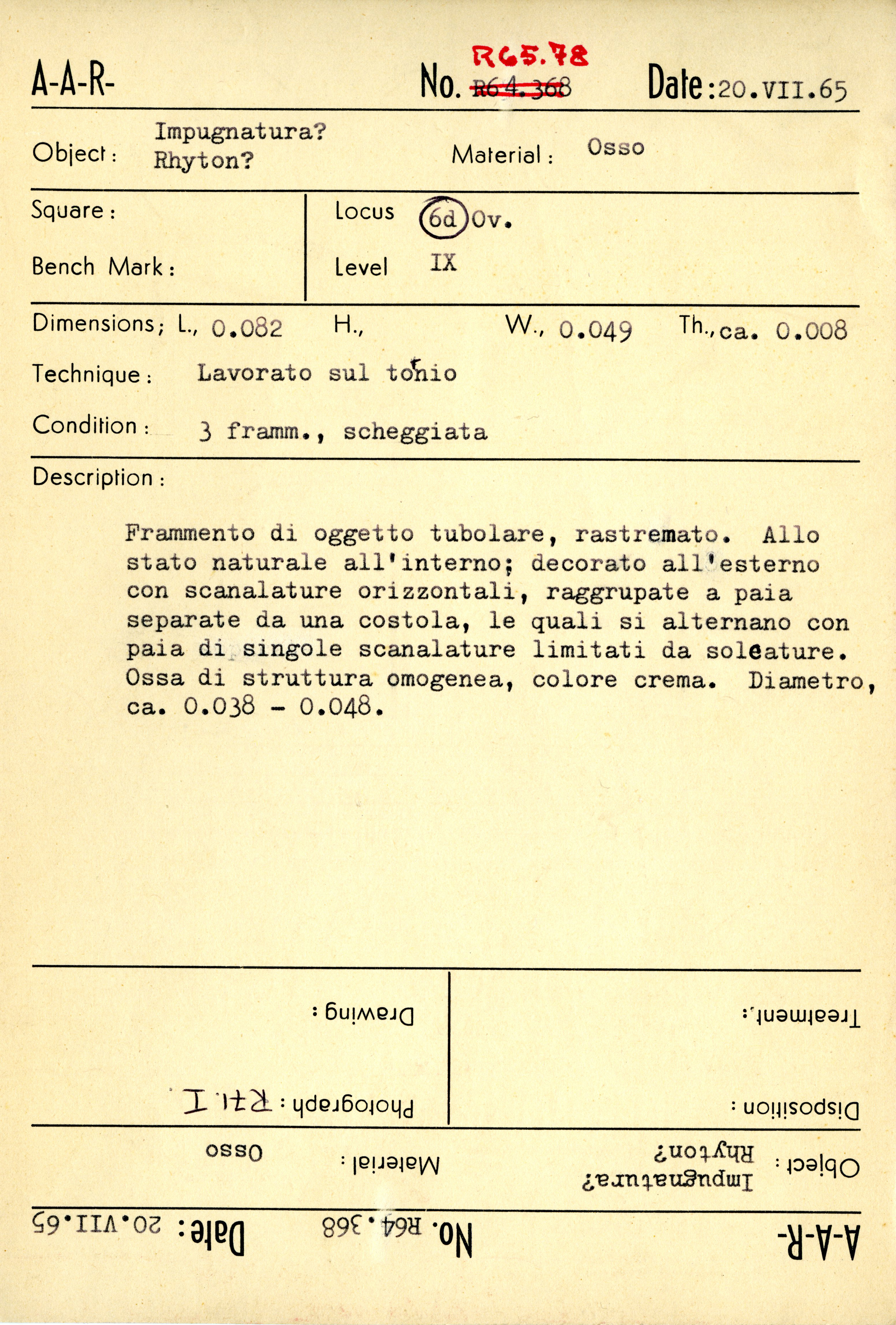 Regia Catalogue: [R65.78_Card] (R65.78_Card), 1965-07-20