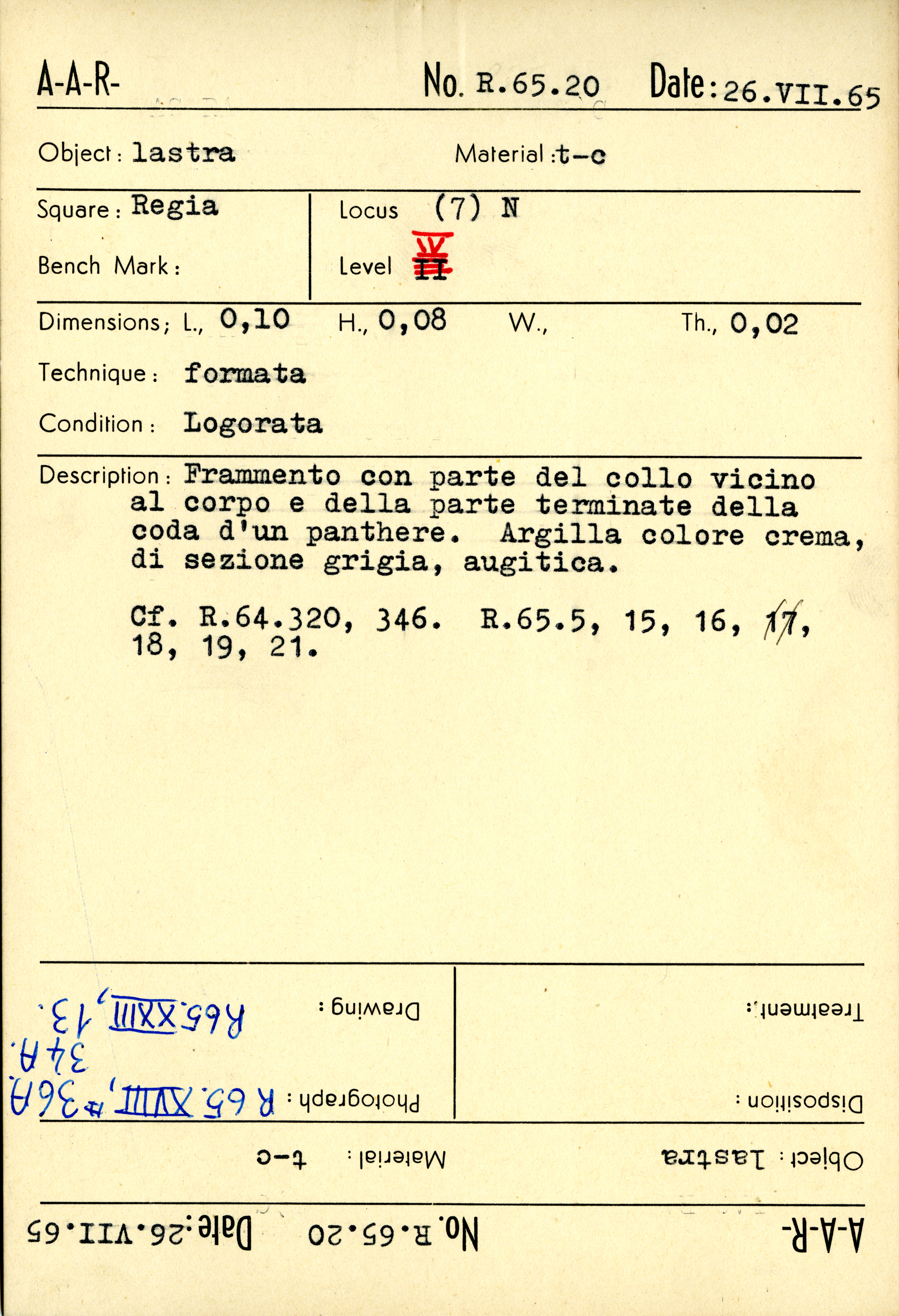 Regia Catalogue: [R65.20_Card] (R65.20_Card), 1965-07-26
