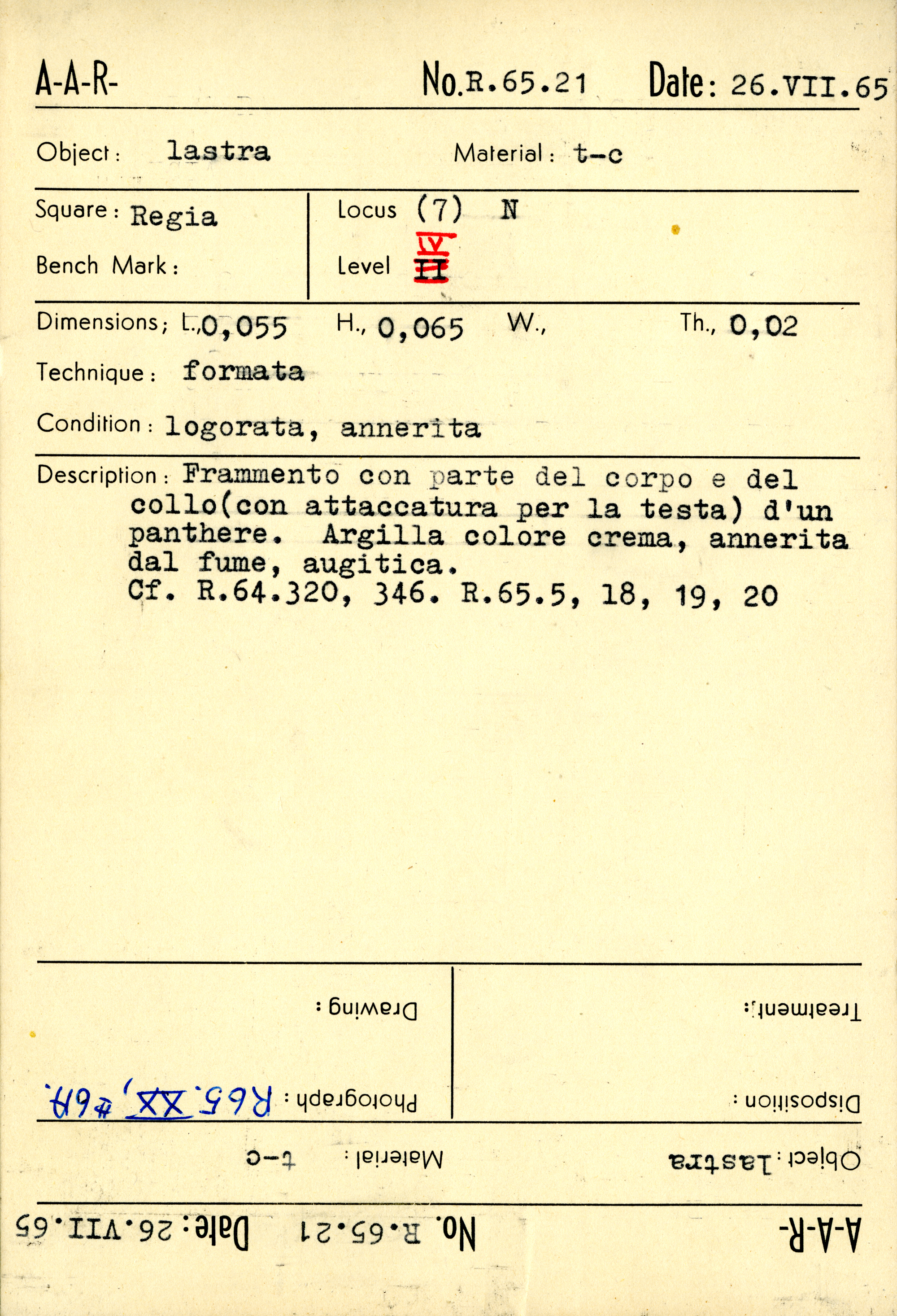 Regia Catalogue: [R65.21_Card] (R65.21_Card), 1965-07-26