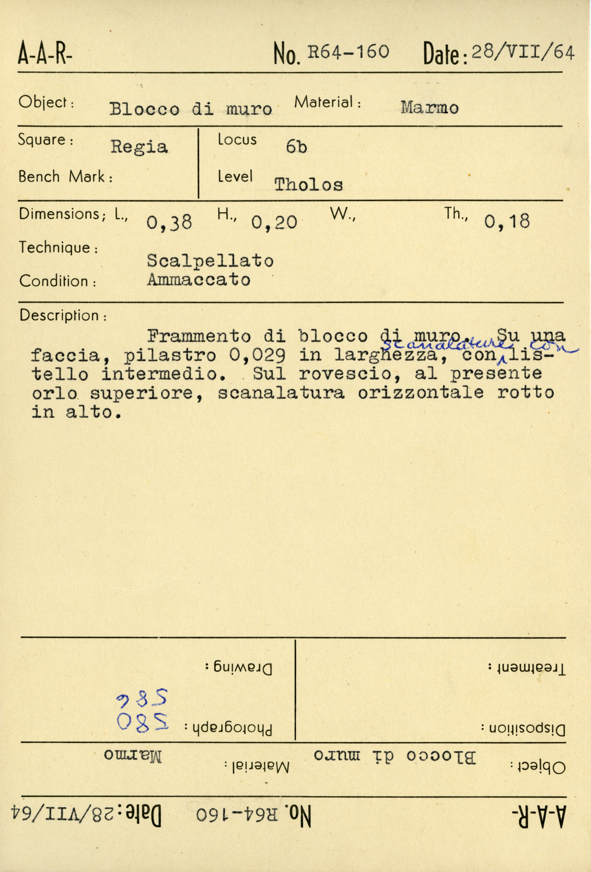 Regia Catalogue: [R64.160_Card] (R64.160_Card), 1964-07-28