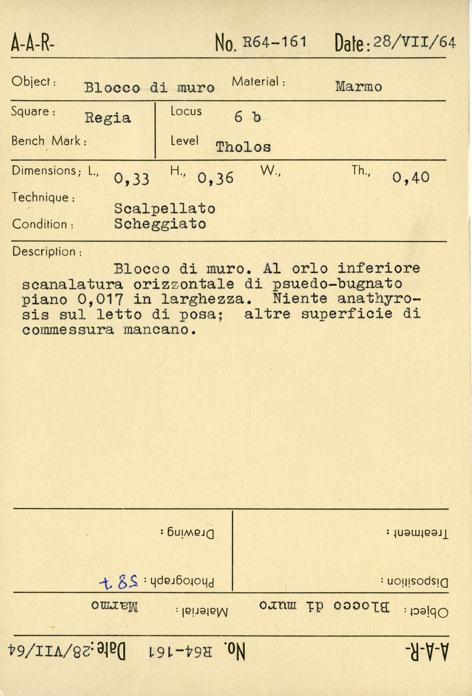 Regia Catalogue: [R64.161_Card] (R64.161_Card), 1964-07-28