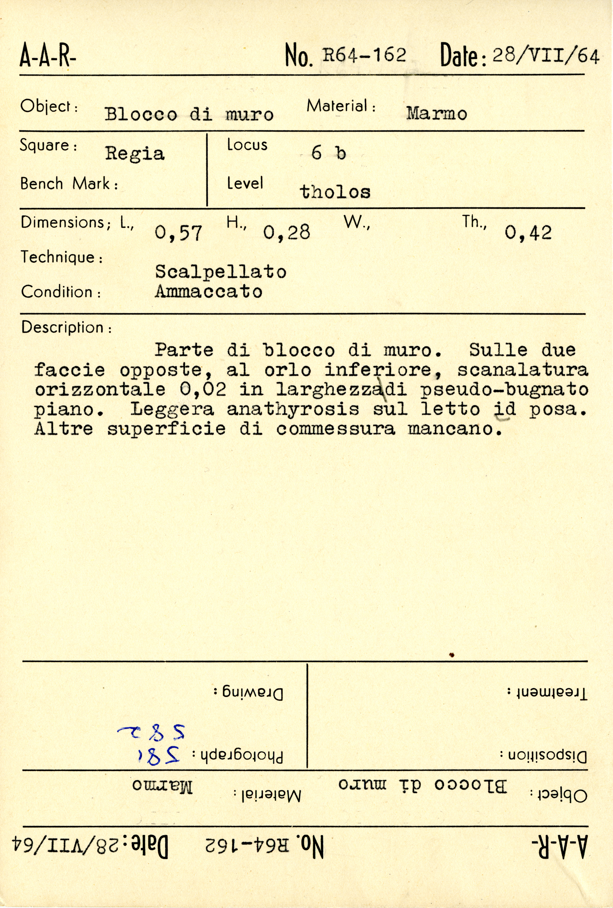 Regia Catalogue: [R64.162_Card] (R64.162_Card), 1964-07-28