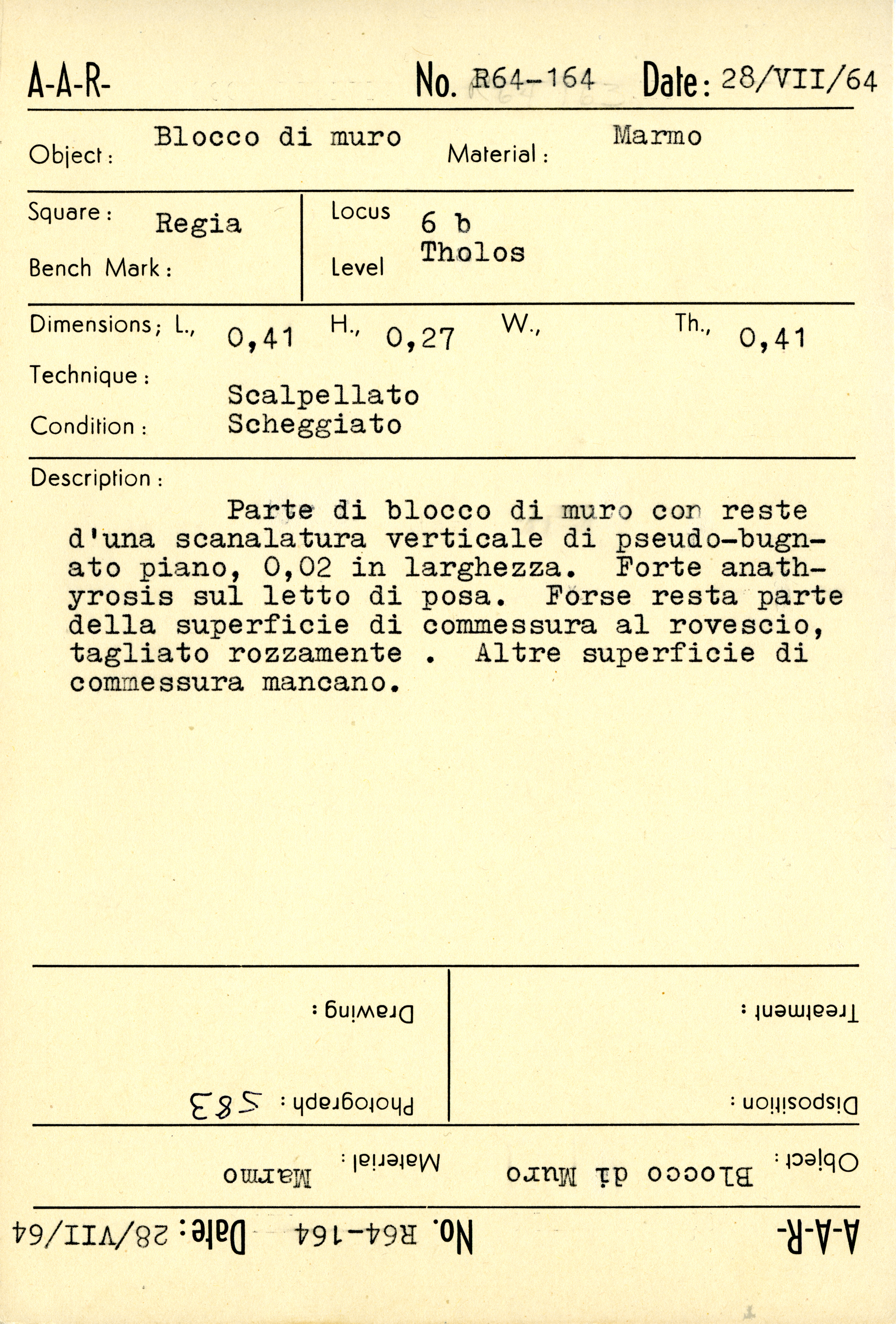 Regia Catalogue: [R64.164_Card] (R64.164_Card), 1964-07-28