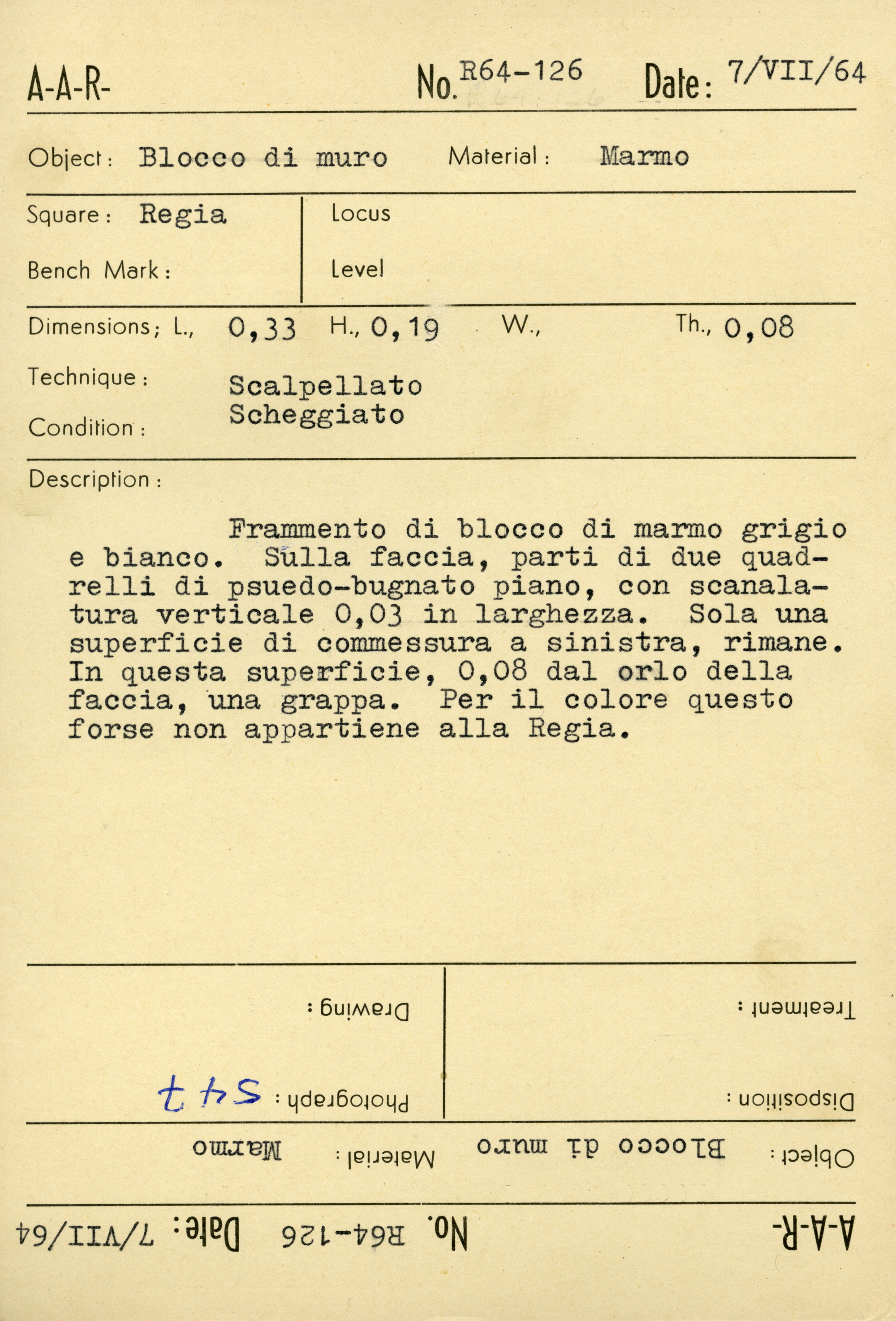 Regia Catalogue: [R64.126_Card] (R64.126_Card), 1964-07-07