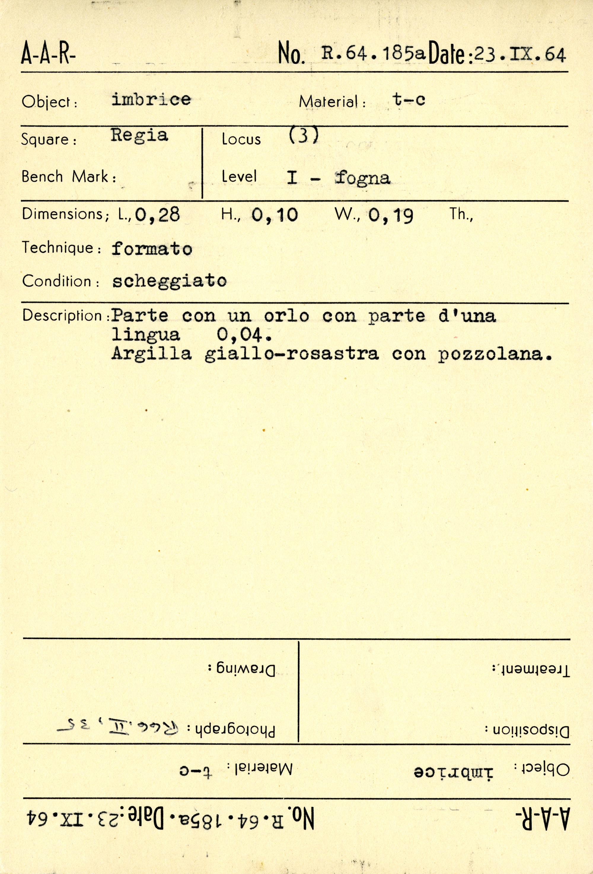 Regia Catalogue: [R64.185a_Card] (R64.185a_Card), 1964-09-23