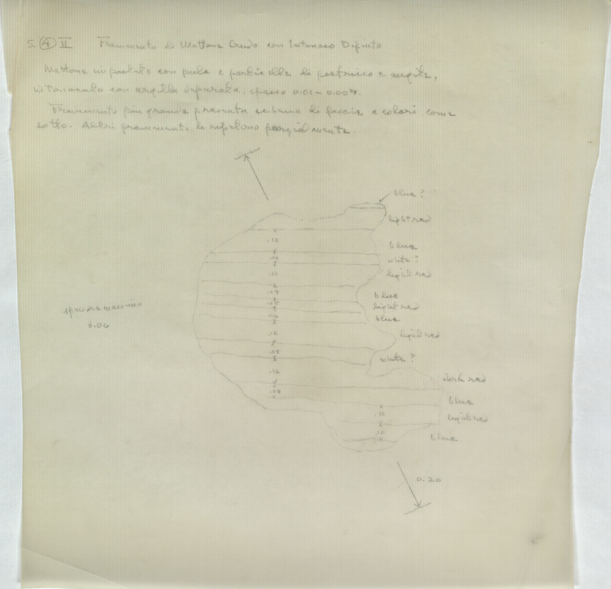 Regia Drawings: [S. (4) II. Frammento di mattone crudo con intonaco dipinto] (AAR_drw_A14alberi_2046g), 1964