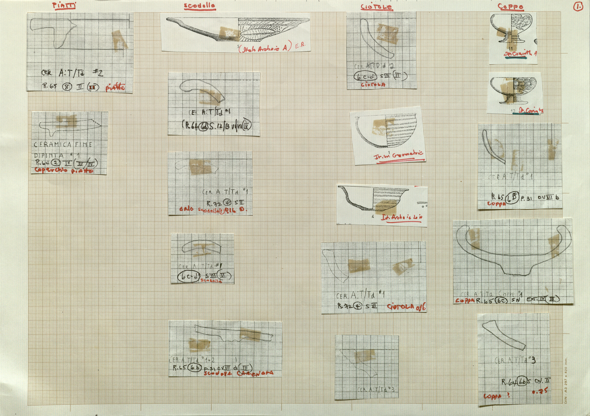 Regia Drawings: [(1.) Piatti, Scodelle, Ciotole, Coppe] (AAR_drw_B8_1367-40), 1973-1974