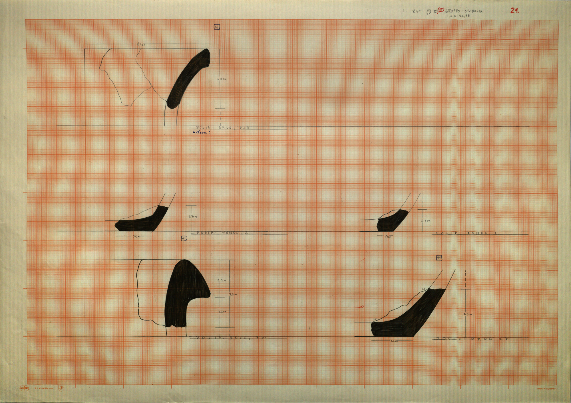 Regia Drawings: [R64 (4) II, (II); GRUPPO "C" / DOLIA 1,2,6.7a, 7b / 24.] (AAR_drw_B8_1373-15), 1964