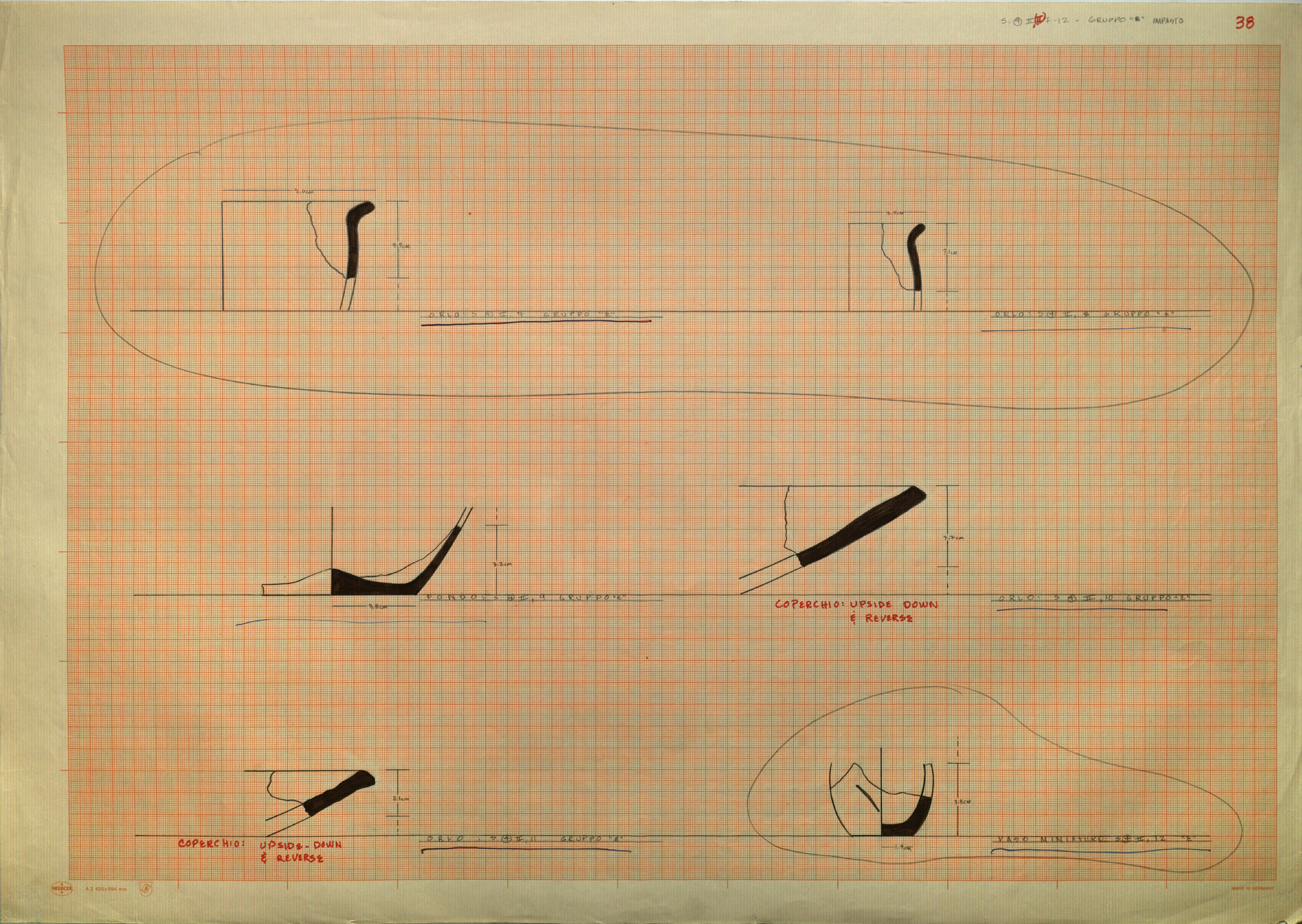 Regia Drawings: [S. (4) II, (II); 7-12 - GRUPPO "E" - IMPASTO / 38] (AAR_drw_B8_1373-31), 1964