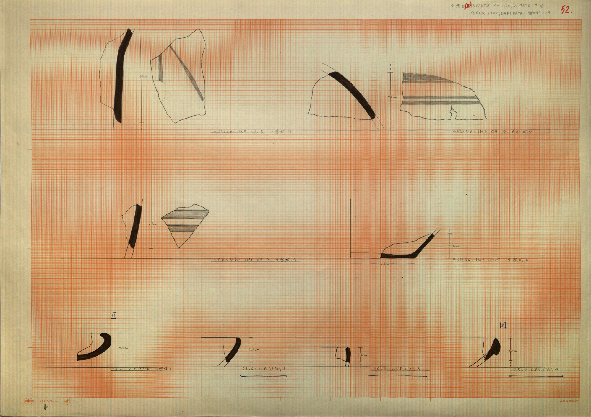 Regia Drawings: [S. (4) II, (II); IMPASTO CHIARO, DIPINTO 7-10; CERAM. FINE, DEPURATA - TIPO "A" 1-4 / 52.] (AAR_drw_B8_1373-45), 1964