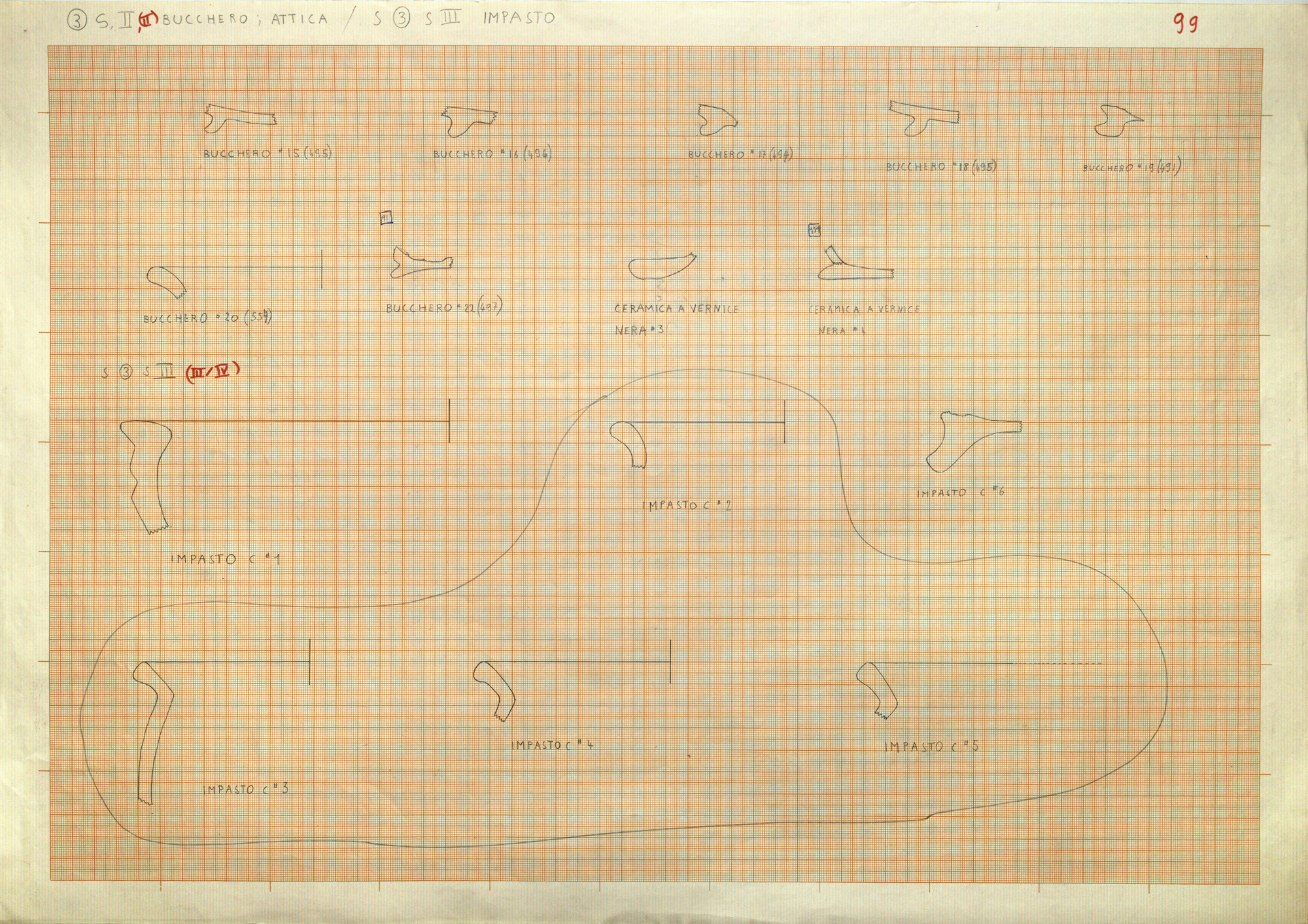 Regia Drawings: [(3) S. II, (II) bucchero; attica / 99] (AAR_drw_B8_1375-10), 1964