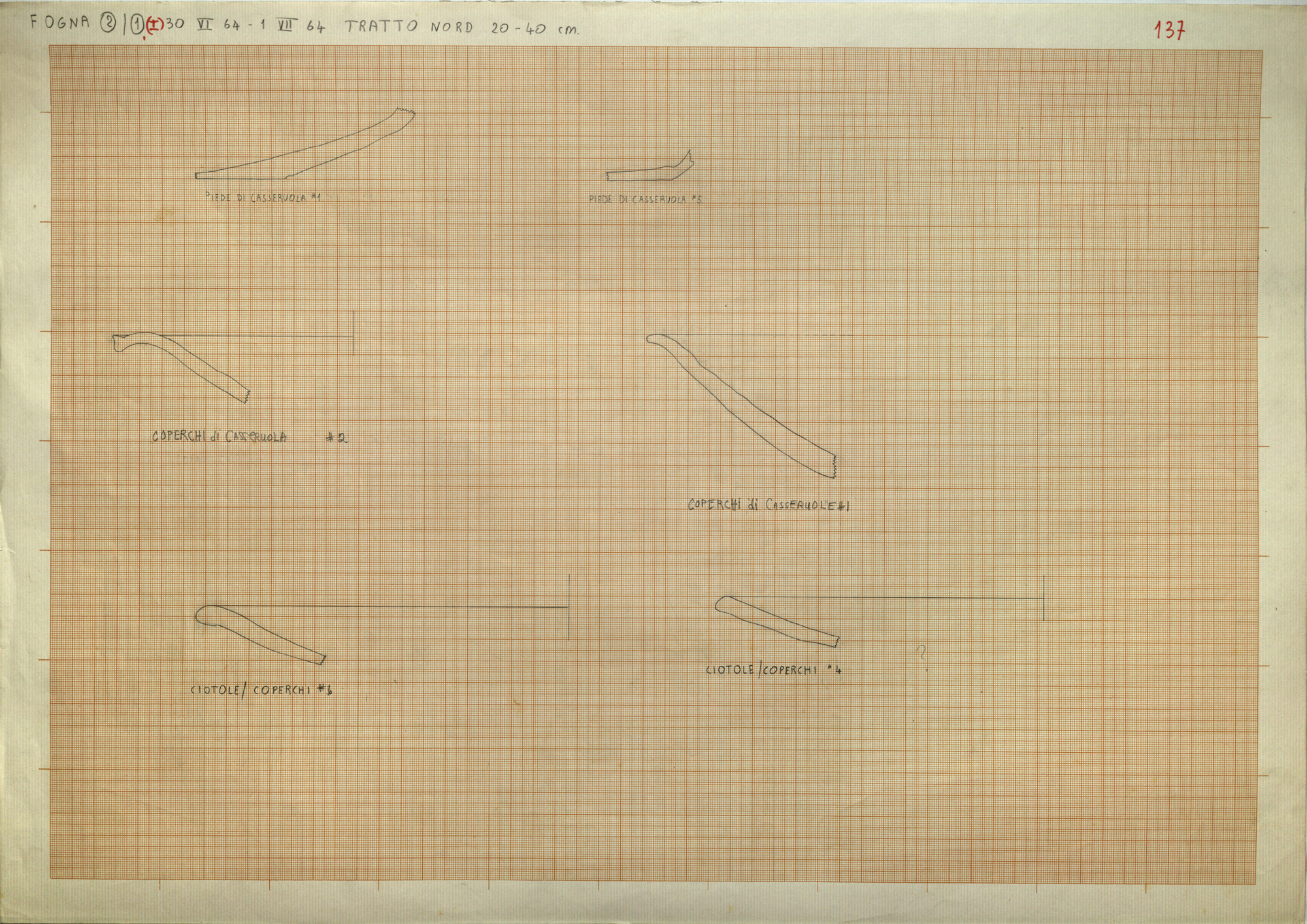 Regia Drawings: [FOGNA (2)/(1) (I) 30 VI 64 - 1 VII 64 Tratto Nord 20-40 cm / 137] (AAR_drw_B8_1374-6), 1964