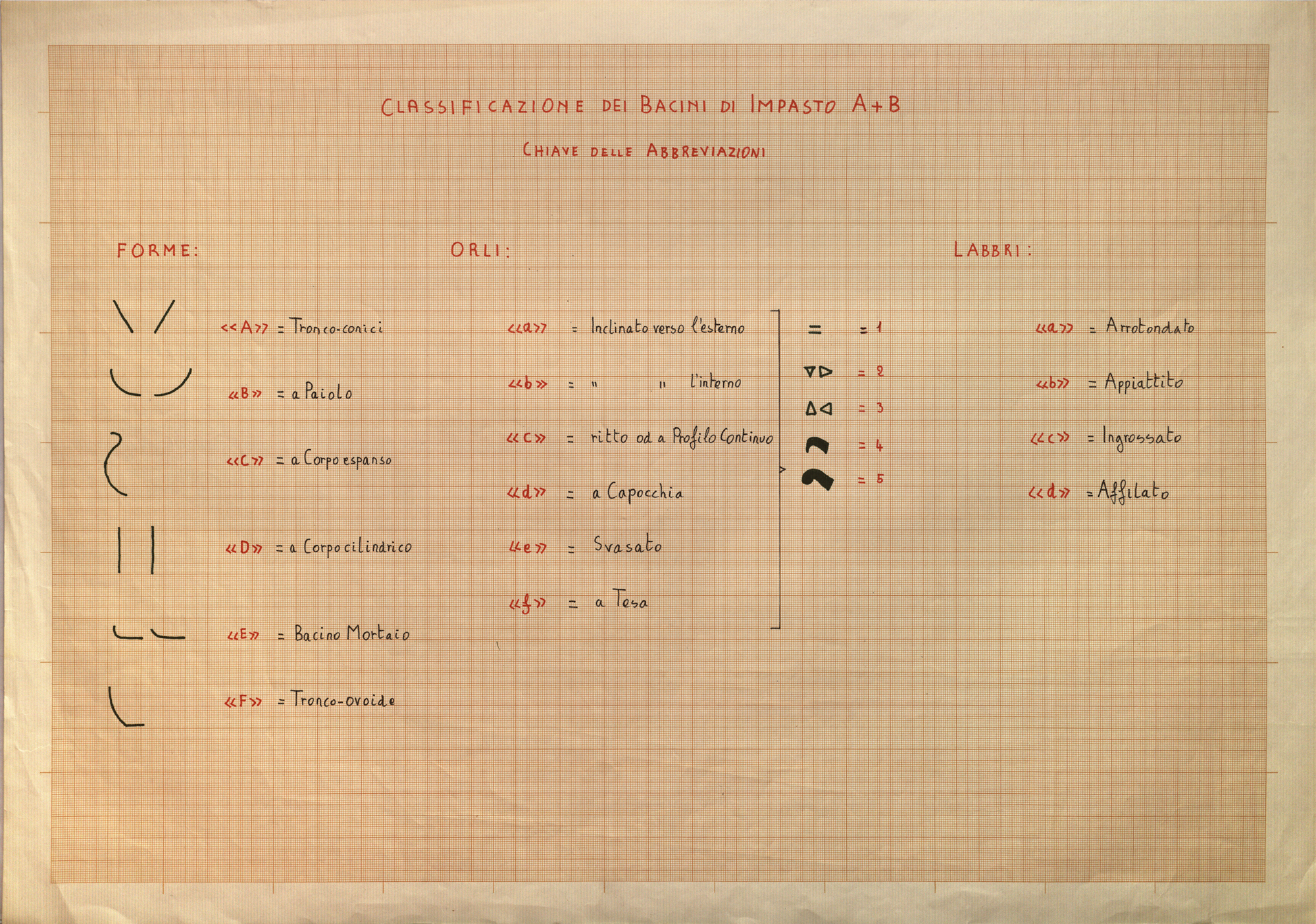 Regia Drawings: [Classificazione dei bacini di impasto A+B. Chiave delle abbreviazioni] (AAR_drw_B8_1381-2)
