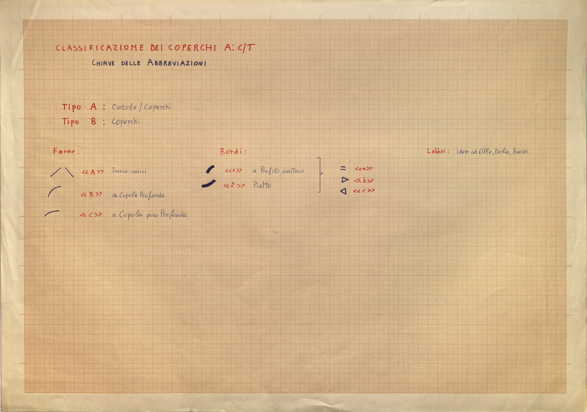 Regia Drawings: [Classificazione dei coperchi A:C/T. Chiave delle abbreviazioni] (AAR_drw_B8_1381-3)