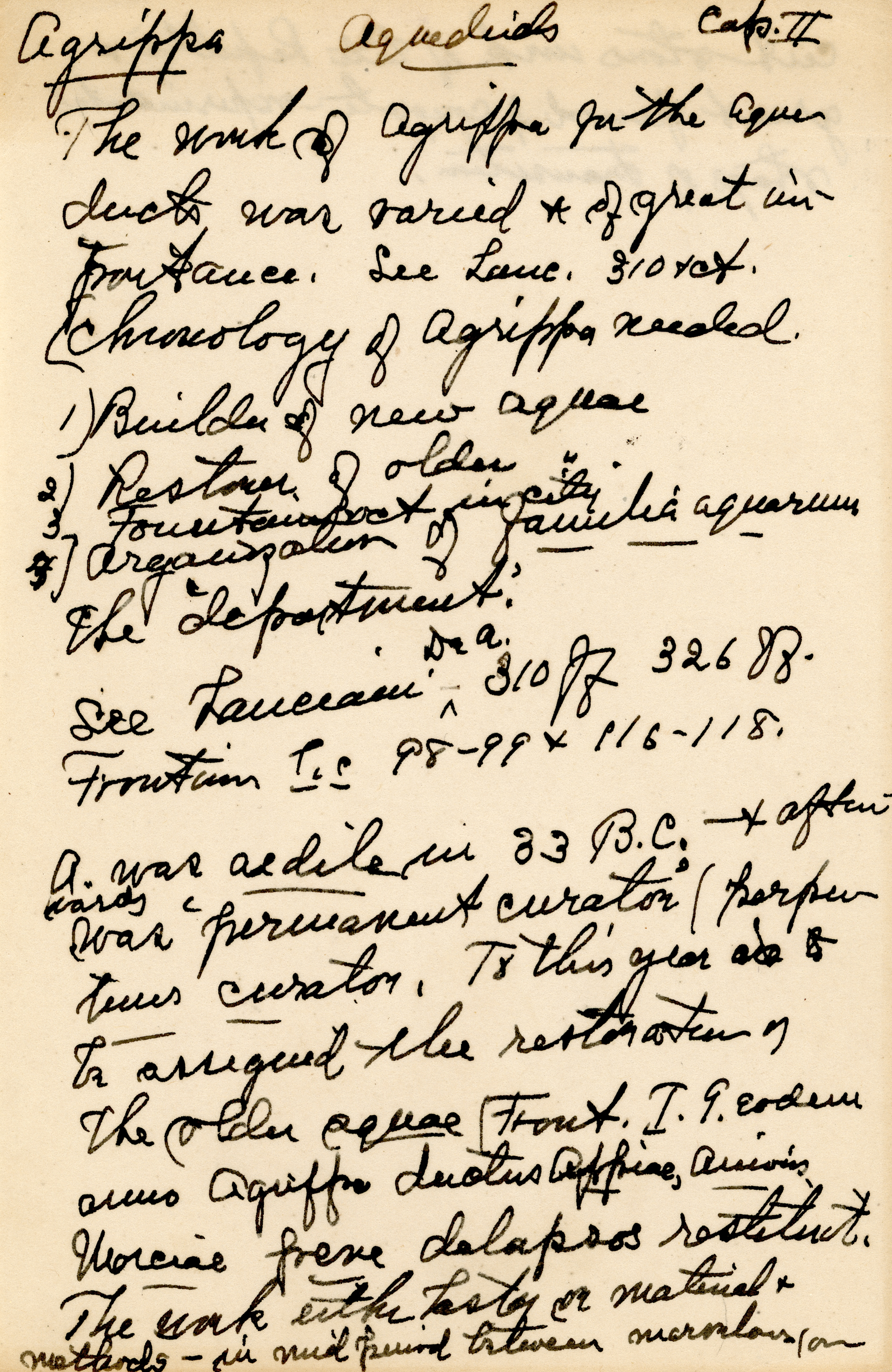 The collection is composed of notes taken by Esther Van Deman during all her archaeological surveys and travel excavations in the Roman Forum between 1907 and 1929. It is a rare example of both a personal and a professional archive.