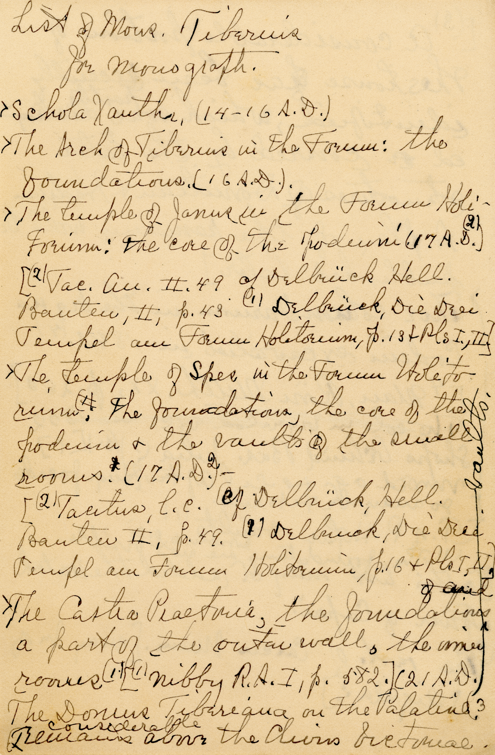 The collection is composed of notes taken by Esther Van Deman during all her archaeological surveys and travel excavations in the Roman Forum between 1907 and 1929. It is a rare example of both a personal and a professional archive.