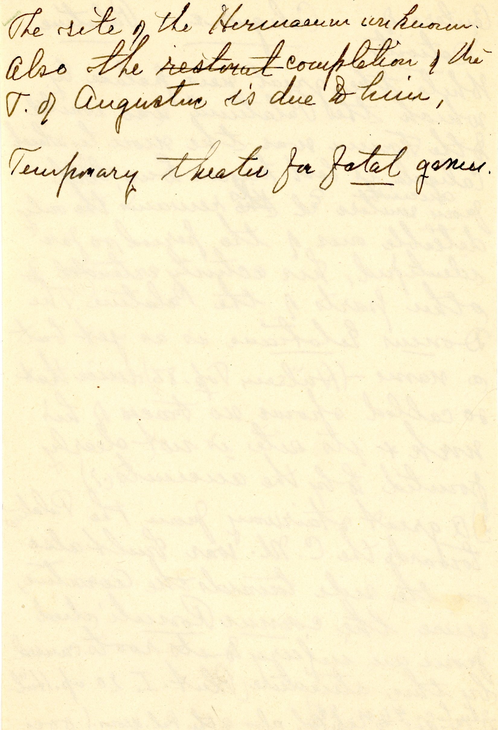 The collection is composed of notes taken by Esther Van Deman during all her archaeological surveys and travel excavations in the Roman Forum between 1907 and 1929. It is a rare example of both a personal and a professional archive.