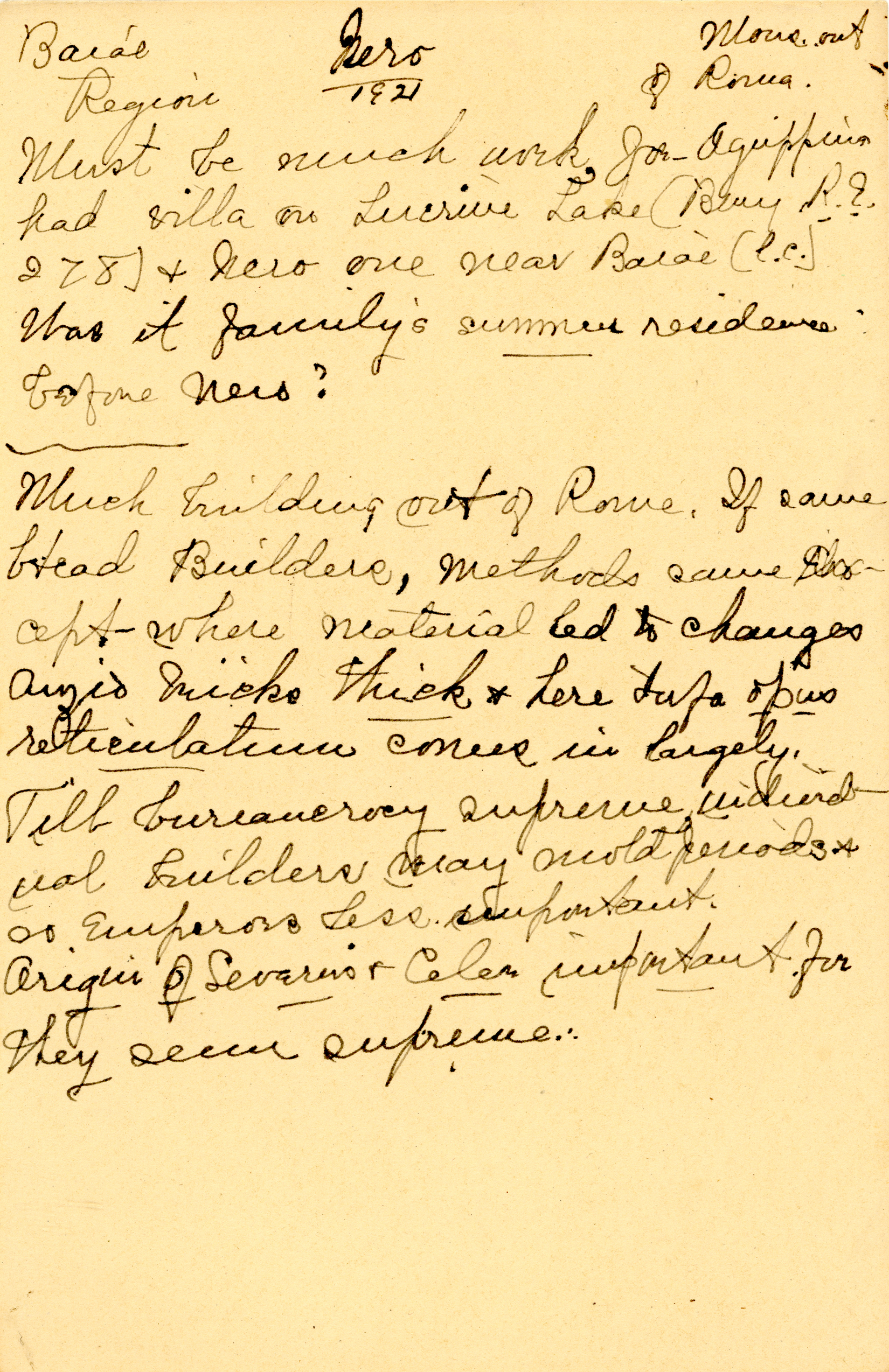 The collection is composed of notes taken by Esther Van Deman during all her archaeological surveys and travel excavations in the Roman Forum between 1907 and 1929. It is a rare example of both a personal and a professional archive.