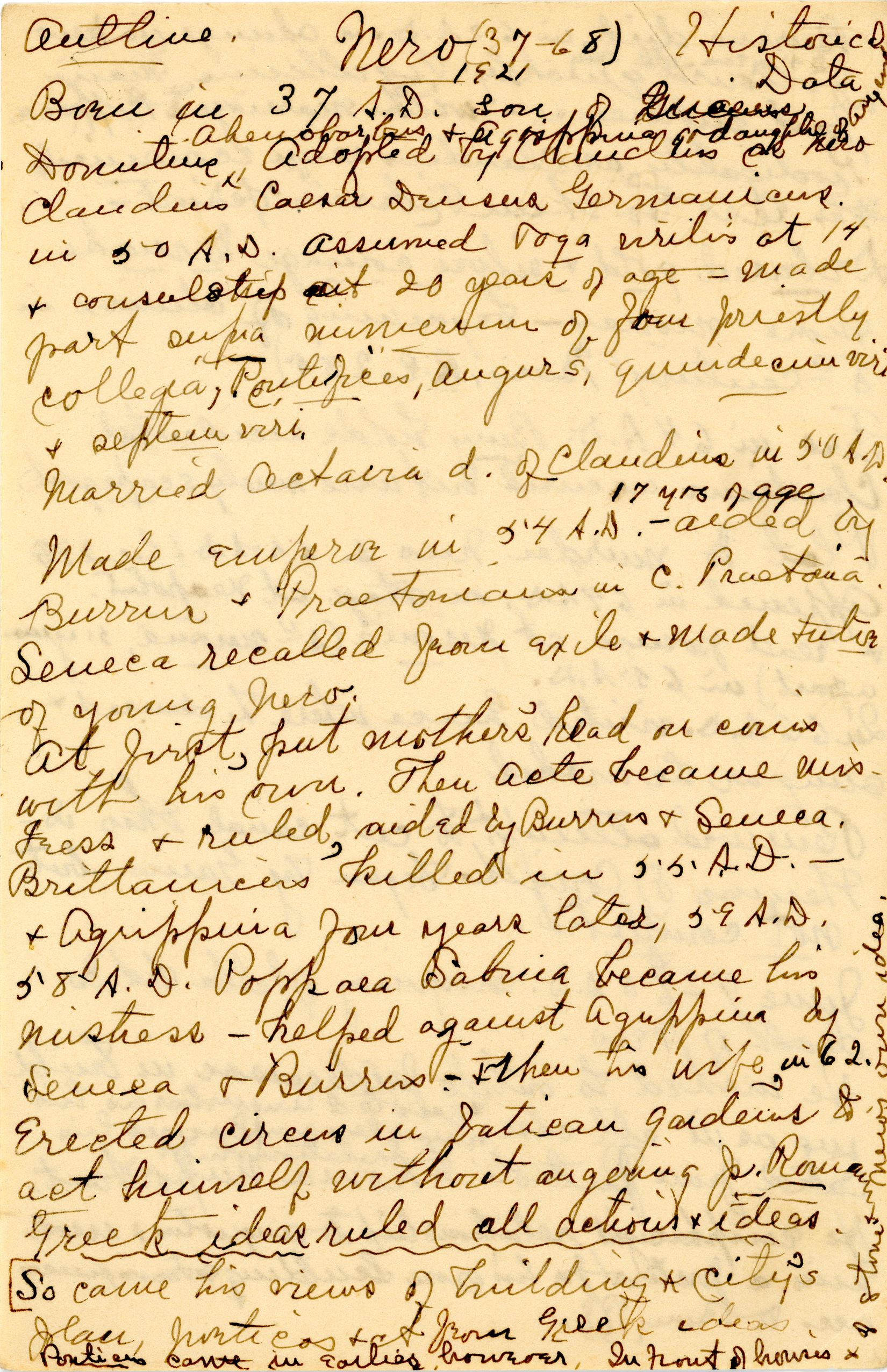 The collection is composed of notes taken by Esther Van Deman during all her archaeological surveys and travel excavations in the Roman Forum between 1907 and 1929. It is a rare example of both a personal and a professional archive.