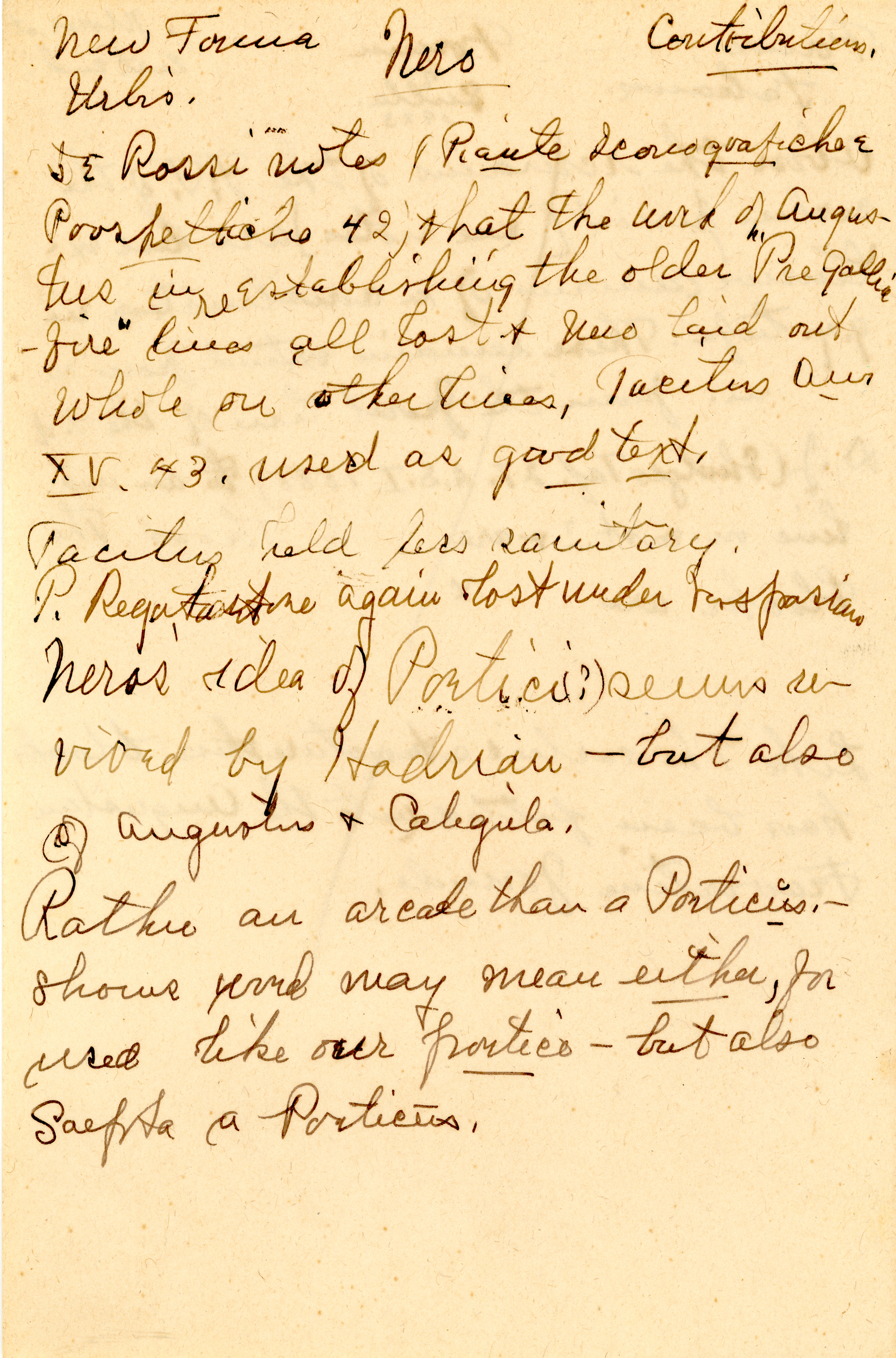 The collection is composed of notes taken by Esther Van Deman during all her archaeological surveys and travel excavations in the Roman Forum between 1907 and 1929. It is a rare example of both a personal and a professional archive.