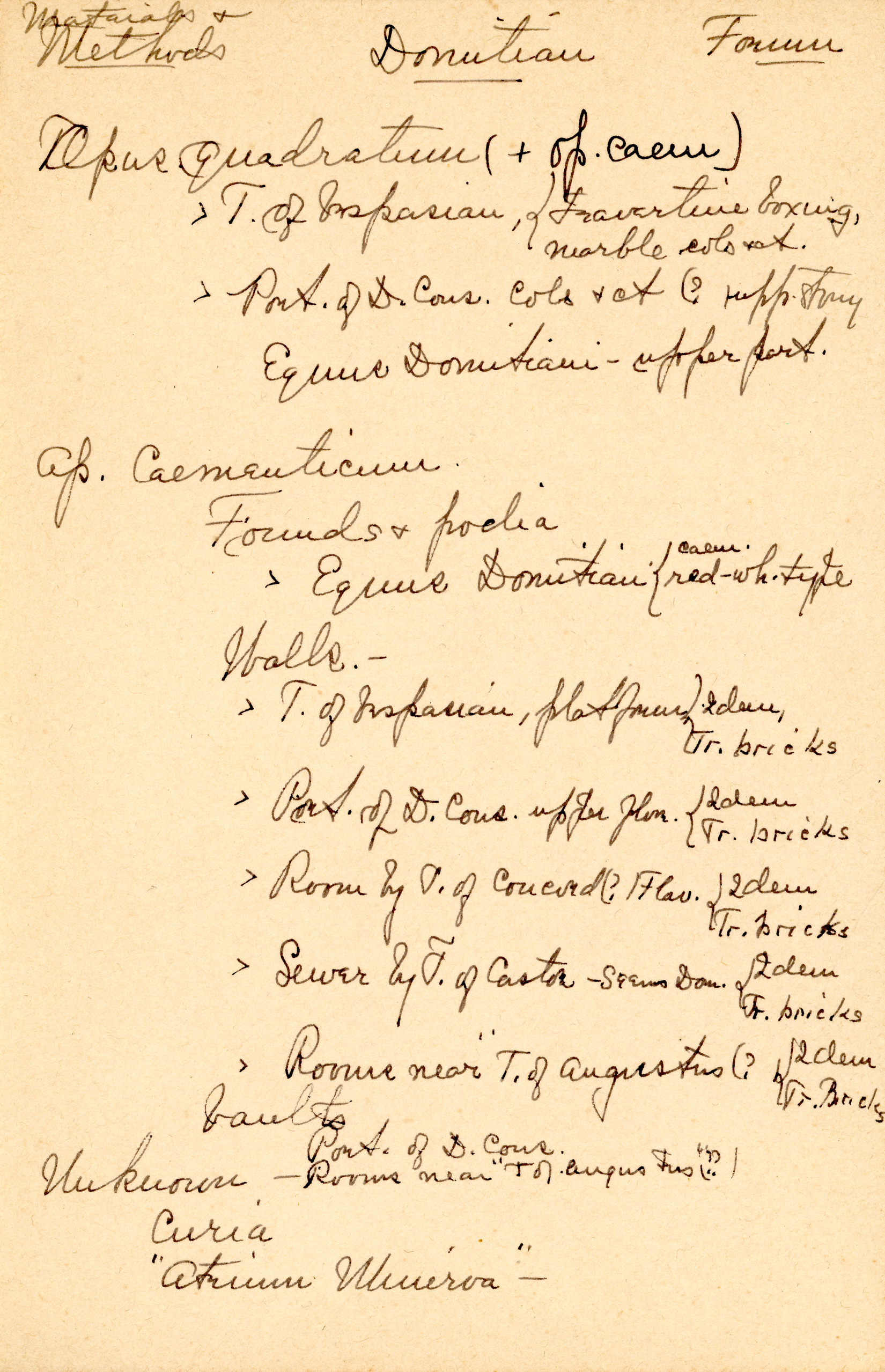 The collection is composed of notes taken by Esther Van Deman during all her archaeological surveys and travel excavations in the Roman Forum between 1907 and 1929. It is a rare example of both a personal and a professional archive.