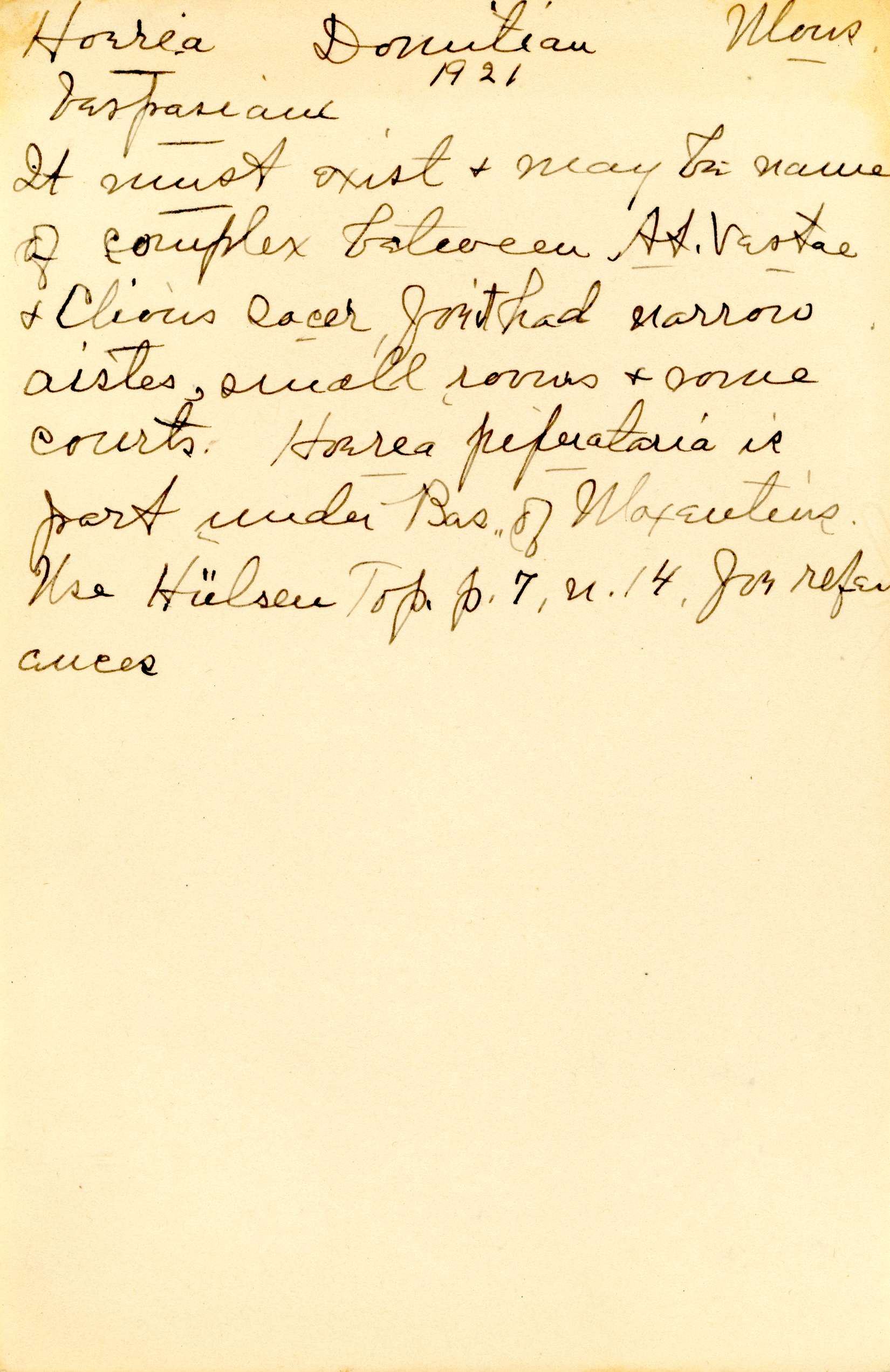 The collection is composed of notes taken by Esther Van Deman during all her archaeological surveys and travel excavations in the Roman Forum between 1907 and 1929. It is a rare example of both a personal and a professional archive.