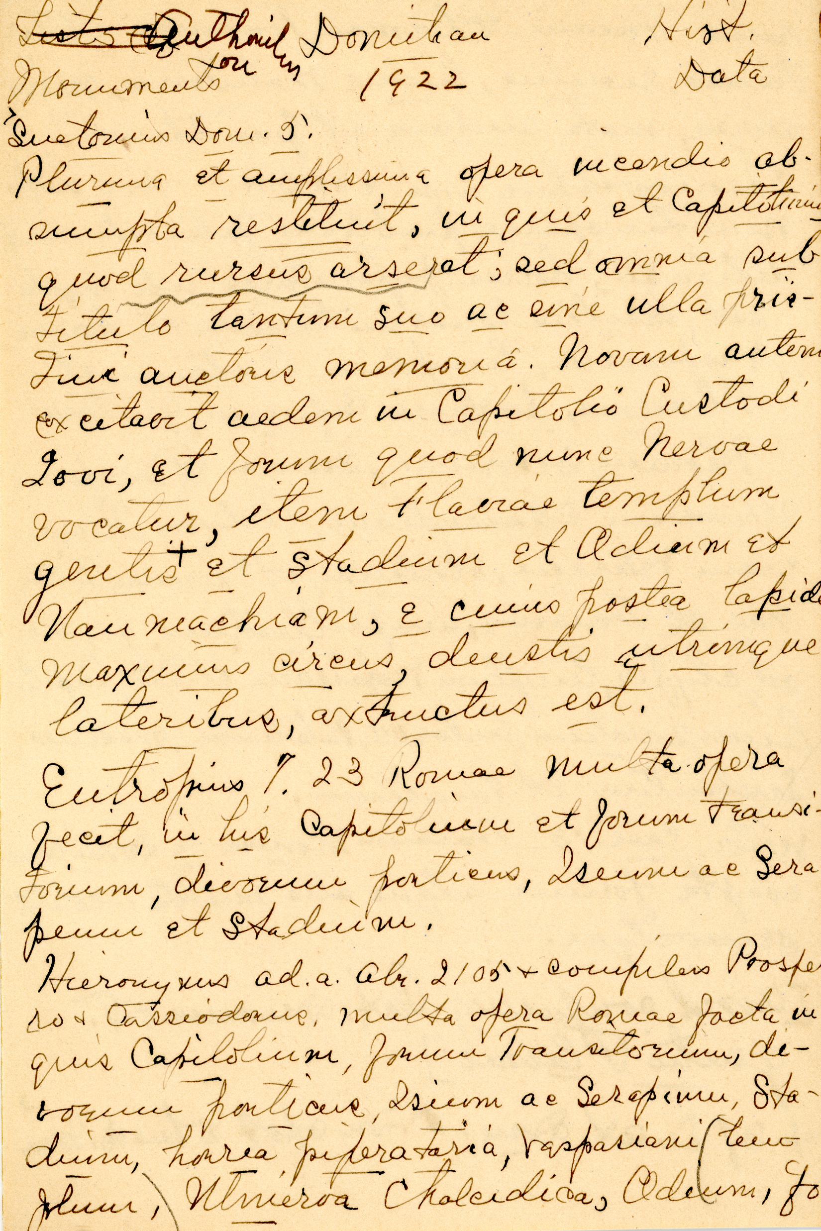 The collection is composed of notes taken by Esther Van Deman during all her archaeological surveys and travel excavations in the Roman Forum between 1907 and 1929. It is a rare example of both a personal and a professional archive.